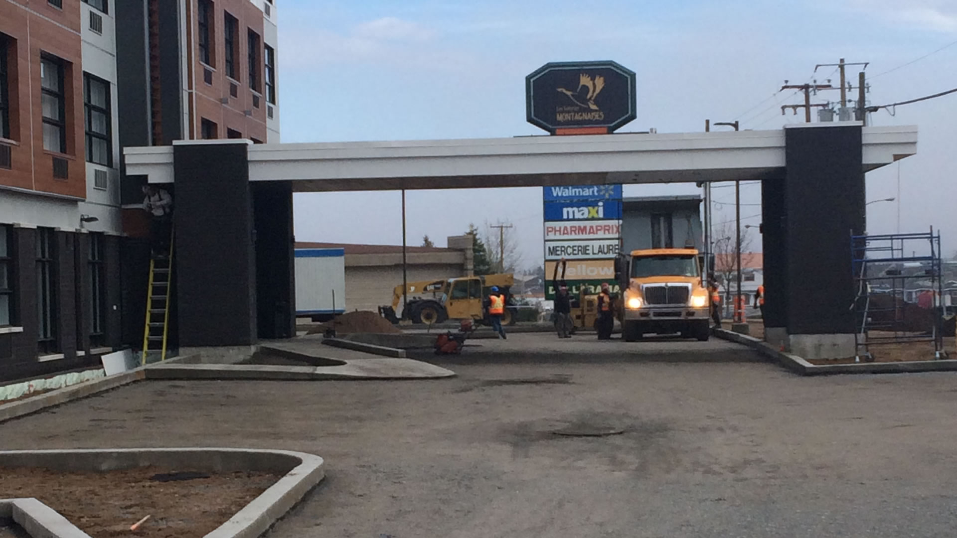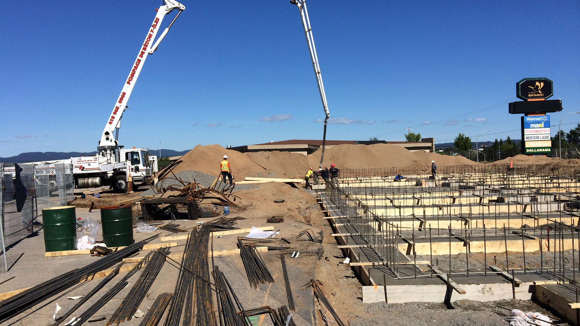 Travaux de coffrage et bétonnage des fondations de l’hôtel et travaux d’aménagement extérieur pour le stationnement.